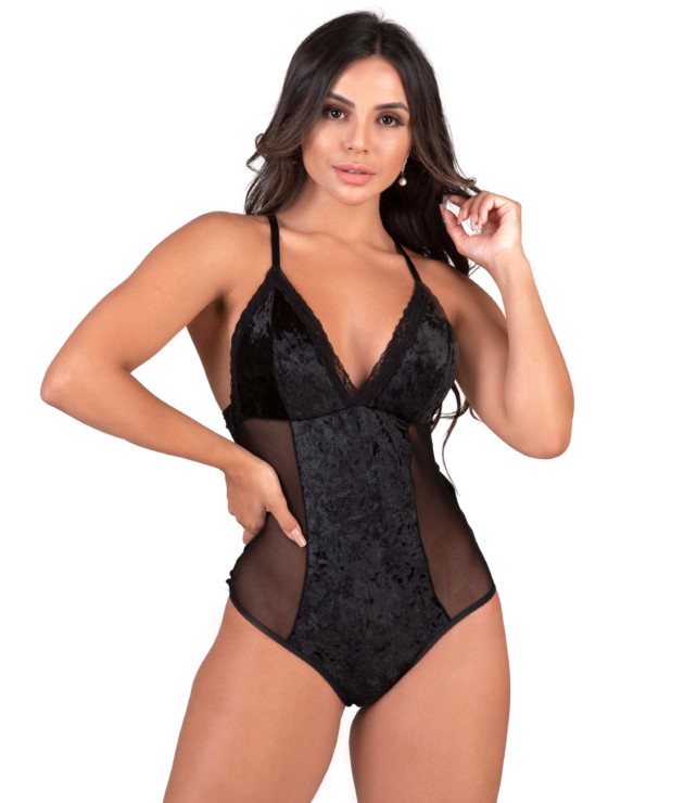 O Body em veludo com tule – Safira, é definitivamente perfeito para arrasar com aquele look super especial, e vai proporcionar a você ainda mais sensualidade. E para que este modelo garantisse a você muito conforto, o confeccionamos com uma composição maravilhosa. Ele é composto por 90% poliéster e 10% elastano. O forro da parte inferior está em 100% algodão. Não possui bojo, assim como não possui arco de viés. As alças possuem regulagem em metal. O desenho da renda pode variar. O viés, a renda e o tule sempre são enviados na cor preta. Não deixe de comprar as nossas Roupas de Dormir. E a super dica de hoje é o Short doll com renda no busto – Rose. E se você quer arrasar naqueles momentos mais especiais, dê uma olhadinha no Conjunto de bojo – Tatiana.