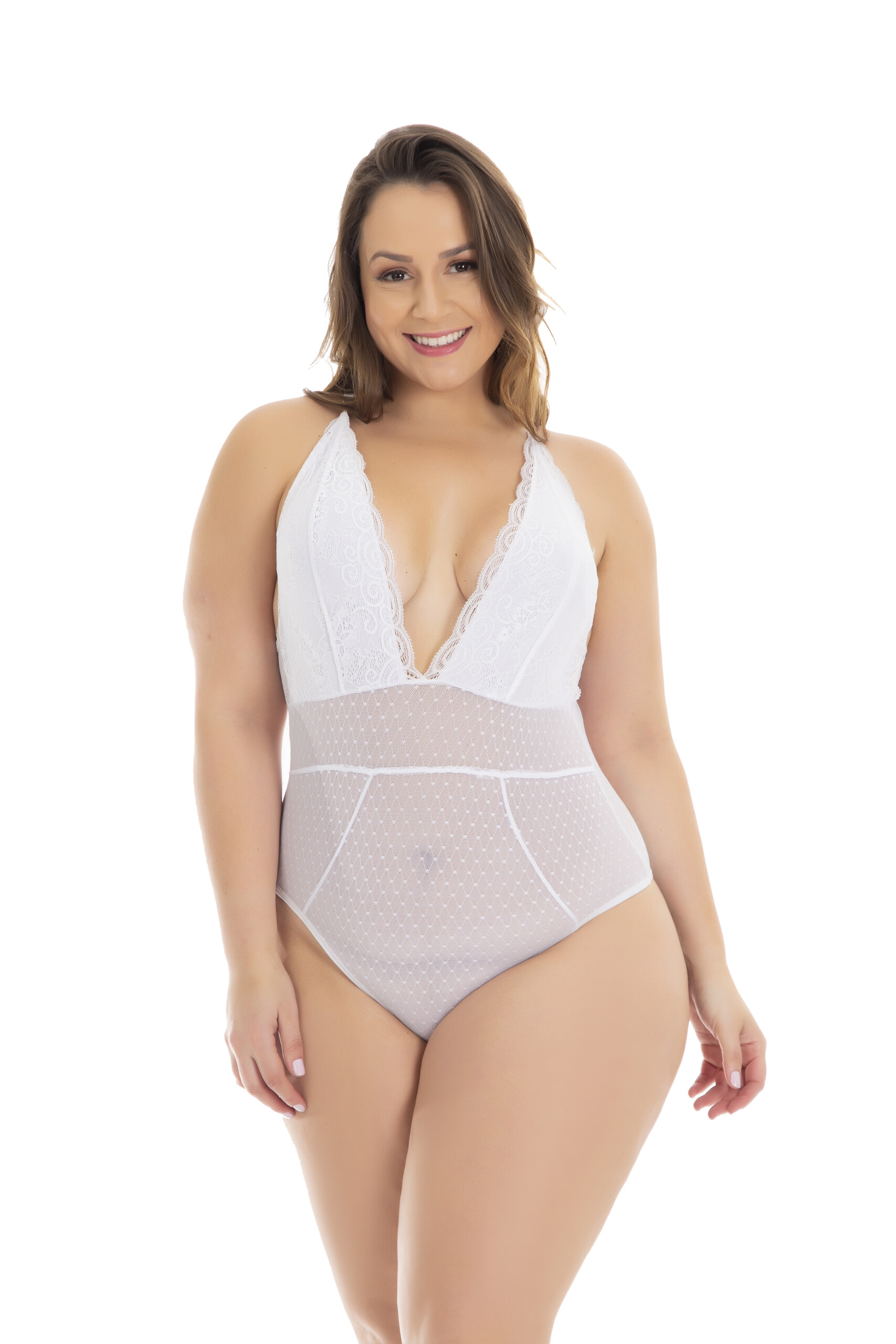 Se você curte montar looks modernos com um body, certamente você irá amar o Body Plus Size Renda e Tule – Tainá. Ele foi feito para ser uma peça extremamente versátil em seu guarda-roupa, ideal para usar e abusar de sua imaginação!