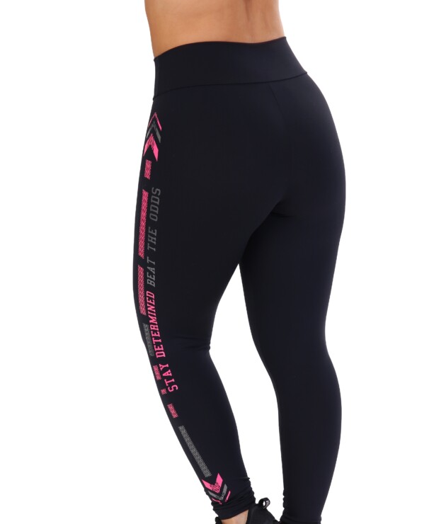 Calça Legging Preta com estampa lateral rosa