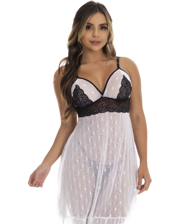 Quer tornar qualquer noite em UM MOMENTO ESPECIAL? Então você precisa conhecer a Camisola de Renda com Tule – Paloma, cheia de transparência, sensualidade e muito charme. Feita especialmente para te mimar, dando aquele “toque a mais” que você merece e que todas AMAMOS!
