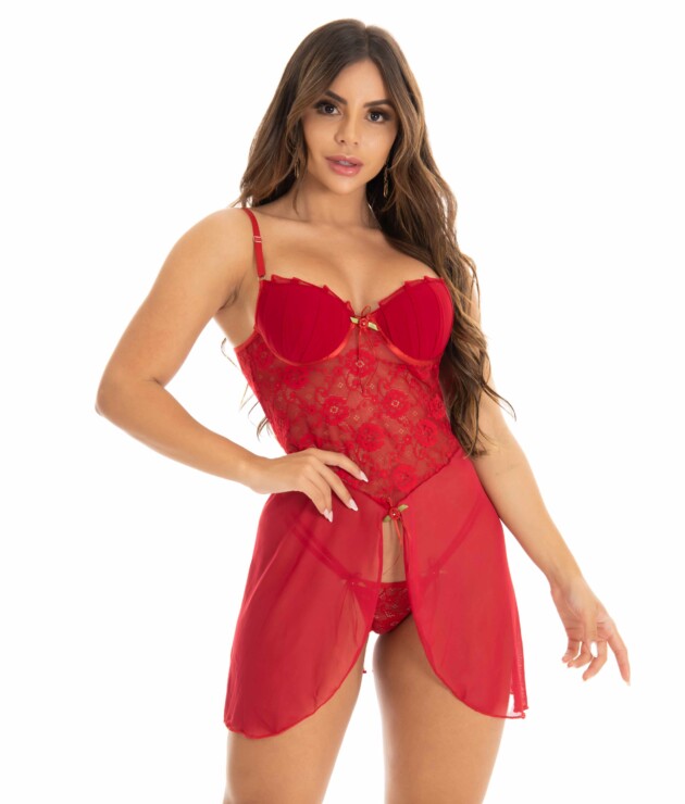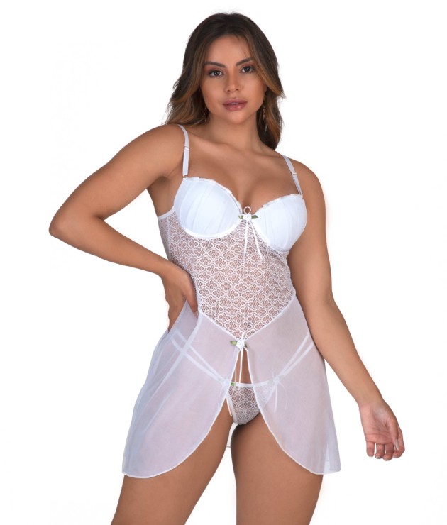 Camisola de bojo em tule com calcinha