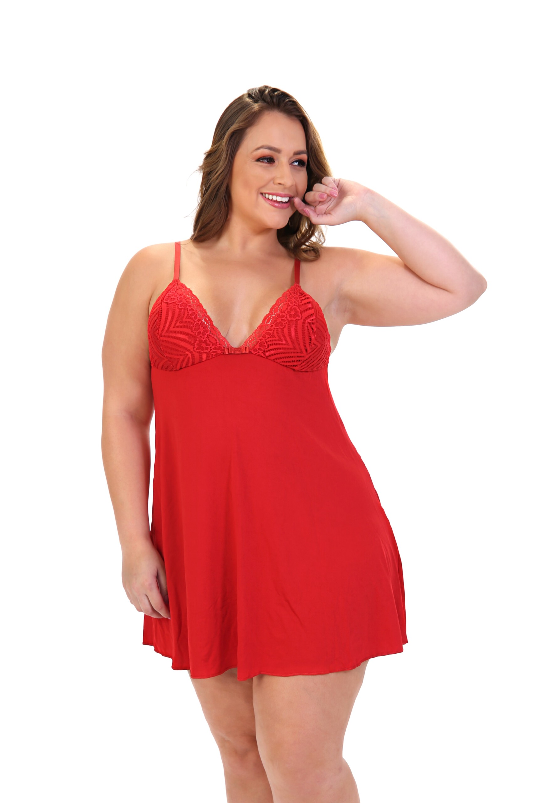Essa camisola é perfeita para usar em casa e combina perfeitamente com o Robe plus size Talita. No entanto se você quiser alguma coisa mais sensual, temos modelos como o Body Kiara e o Soutien plus size strappy – Susan.