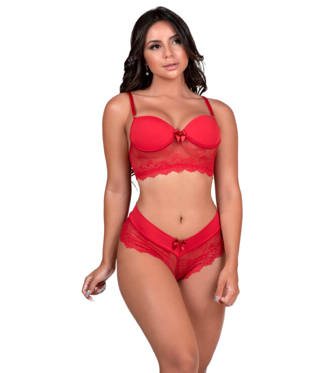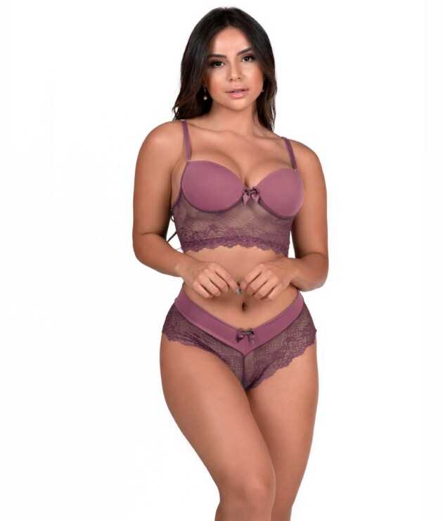 Conjunto de bojo em renda e microfibra – Felicia