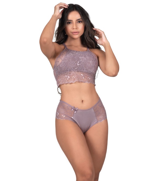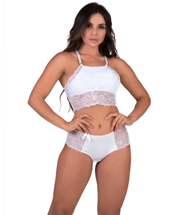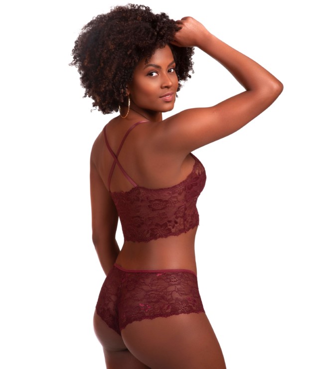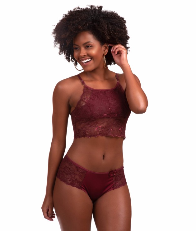 Conjunto de lingerie em renda sem bojo