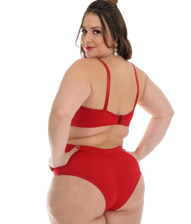 Essa Lingerie Plus Size foi confeccionada para ser perfeita em cada detalhe. Ela está disponível nos tamanhos 48/50/52; bem como nas cores Branco, Preto e Rubi. Sua composição também é perfeita: tendo 90% de Poliéster e 10% de Elastano, o tecido adquire resistência e um toque suave a pele. Além disso, o bojo do Sutiã com Bojo possui 100% Poliéster, bem como o forro da calcinha estilo tangão possui 100% de Algodão. Tudo para sua maior segurança íntima!
