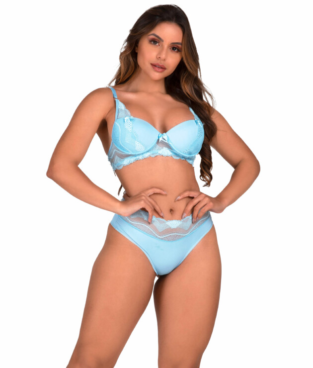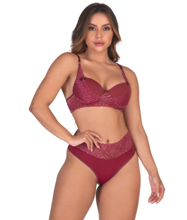 O Conjunto em renda com fio duplo – Alessandra é o modelo perfeito para você que não abre mão do conforto e quer ficar ainda mais sexy. Afinal, você merece o melhor da moda íntima em apenas um clique. E como nós sempre pensamos em cada mínimo detalhe das nossas lingeries para garantir o melhor a você, confeccionamos este conjunto com uma composição definitivamente perfeita. Este modelo é composto por 90% poliamida e 10% elastano. O modelo da calcinha é fio duplo, e não possui forro. Para proporcionar maior sustentação e volume aos seios, os tamanhos P e M possuem enchimento em forma de bolha.