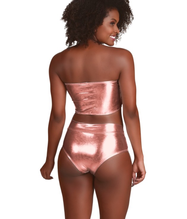 O conjunto hot pants chegou para o carnaval. Usando tecido brilhoso que combina com a época, desenvolvemos esse modelo para animar o seu carnaval. A hot pants tem uma modelagem alta na cintura e leva um elástico embutido na cintura para oferecer mais conforto. O bustiê tem elásticos embutidos na parte de baixo e em cima para ficar bem justo e firme no corpo.