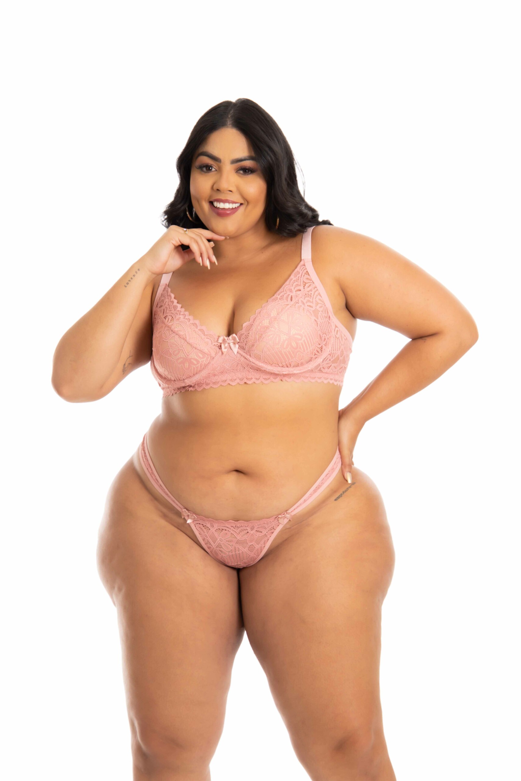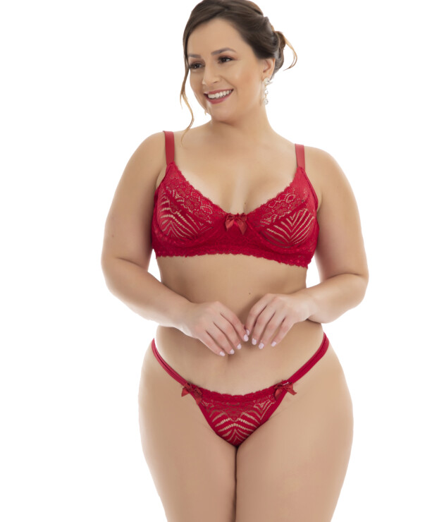 Essa peça é perfeita para você que deseja ser ainda mais sensual, seja em momento especiais ou no seu dia-a-dia. O Conjunto Plus Size sem bojo com aro — Lissy foi planejado para dar um UP! em qualquer visual, bem como conferir maior sustentação e conforto na hora de usar. Você sabe muito bem disso, já que todos os nossos momentos especiais merecem aquele gostinho de “elevando a auto-estima”.