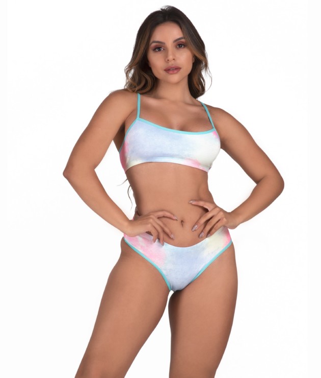 O Conjunto sem bojo em algodão tie dye – Dorothy vai deixar seus looks ainda mais perfeitos. E o melhor, este conjunto é super versátil. Você pode usar a parte do soutien como cropped, ficar perfeito com um jeans. E para garantir ainda mais a sua satisfação, a composição deste conjunto sem bojo está maravilhosa. Ele é composto por 92% algodão e 08% elastano. O forro da calcinha está em 100% algodão. A cor da peça é definida pelo viés. As alças não possuem regulagem. E que tal dar uma passadinha em nossa categoria de Lingerie Vermelha. A dica imperdível de hoje é o Short Doll com detalhe em renda – Melanie e o Conjunto cropped de bojo – Marileia. Enfim, vem para a Click Sophia adquirir o melhor da moda íntima!