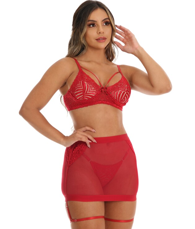 Conjunto sensual sem bojo com Saia transparente