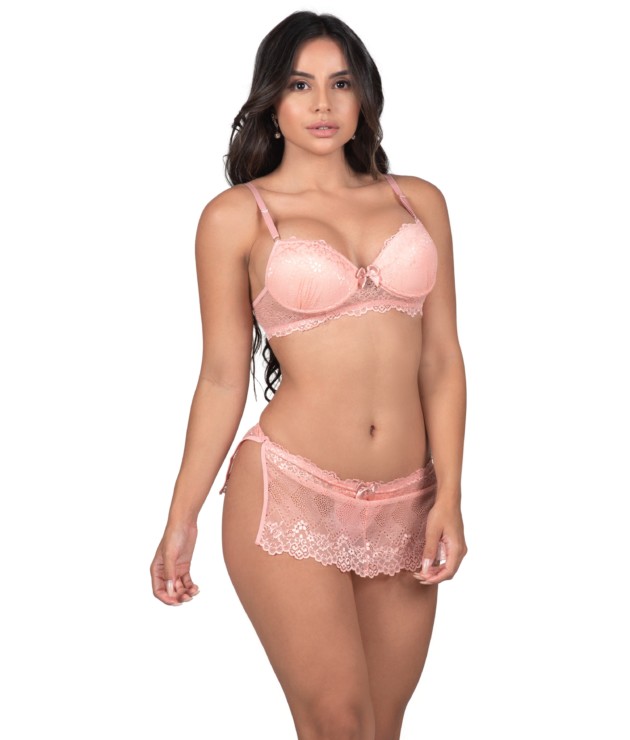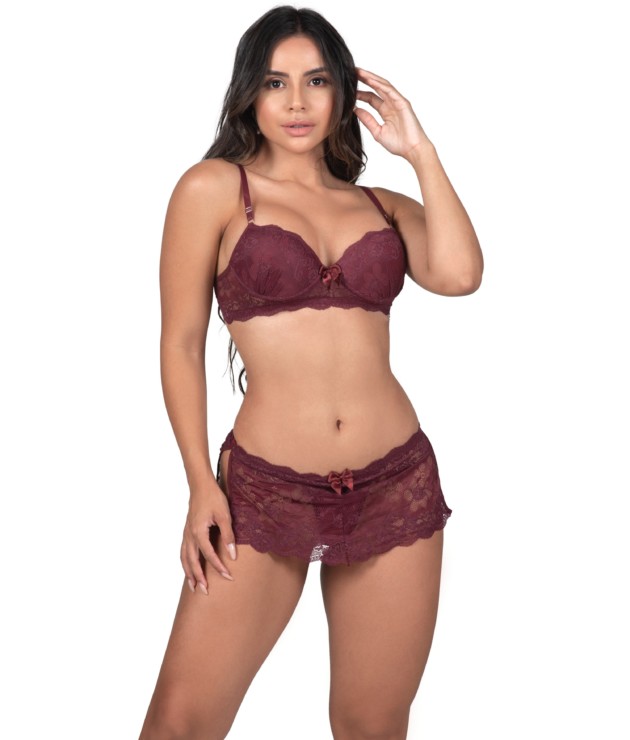 O Conjunto de Bojo em Renda – Solange, é super sexy. Você vai surpreender naqueles momentos mais especiai. A saia é presa na calcinha. As cores foram pensadas especialmente para valorizar ainda mais a peça, além de te deixar cada vez mais linda e sexy. O desenho da renda pode variar. E como qualidade também é um dos nossos lemas, a composição foi pensada especialmente para este Conjunto com Bojo. As alças possuem regulagem em metal. Ele foi confeccionado com 82% poliamida e 18% elastano. O forro está em 100% algodão. O bojo nos tamanhos P e M possuem bolha. É realmente tudo bom! Também não deixe de conferir os nossos Bodys, que também são lindos! Principalmente o Conjunto de lingerie estilo decote – Flavia. Enfim, confira e se apaixone!