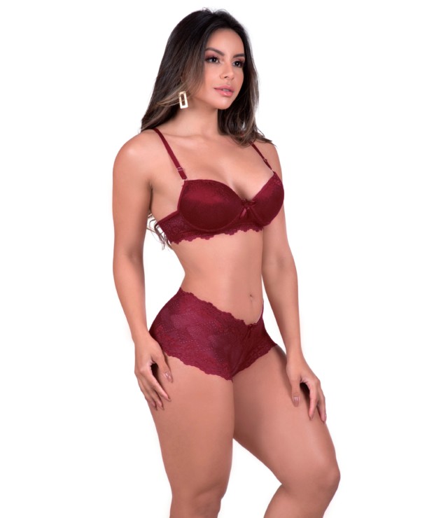 O Conjunto sexy em renda – Vera vai definitivamente te deixar ainda mais charmosa, além de super confortável. Afinal, a composição deste conjunto está maravilhosa. Ele é composto por 90% poliamida e 10% elastano. O forro da calcinha está em 100% algodão. O desenho da renda pode variar. Os tamanhos P e M possuem enchimento em forma de bolha. O arco de viés vai em plástico. As alças possuem regulagem em metal. E o melhor, esta peça possui elástico na pala, proporcionando maior sustentação. E que tal dar uma olhadinha em nossas Lingeries Sensuais? Principalmente na Camisola Ana Mélia e no Conjunto de bojo em renda estilo decote – Margareth. Enfim, aqui na Click Sophia você encontra o melhor da moda íntima por um preço imperdível!