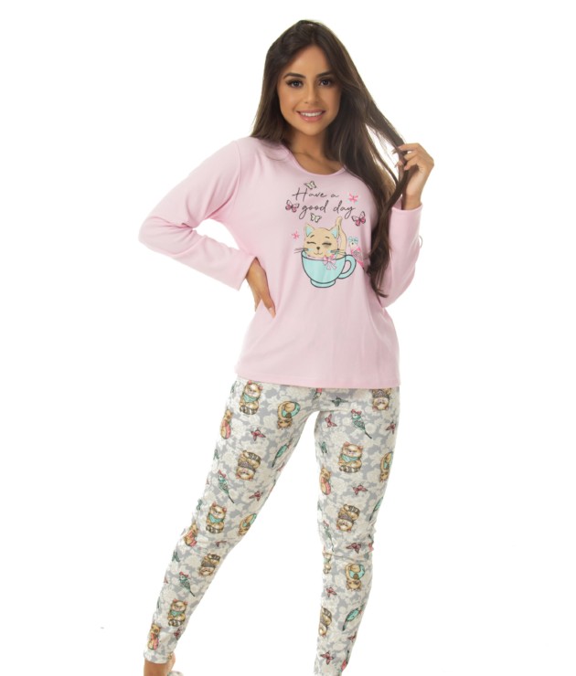 Pijama estampado manga longa