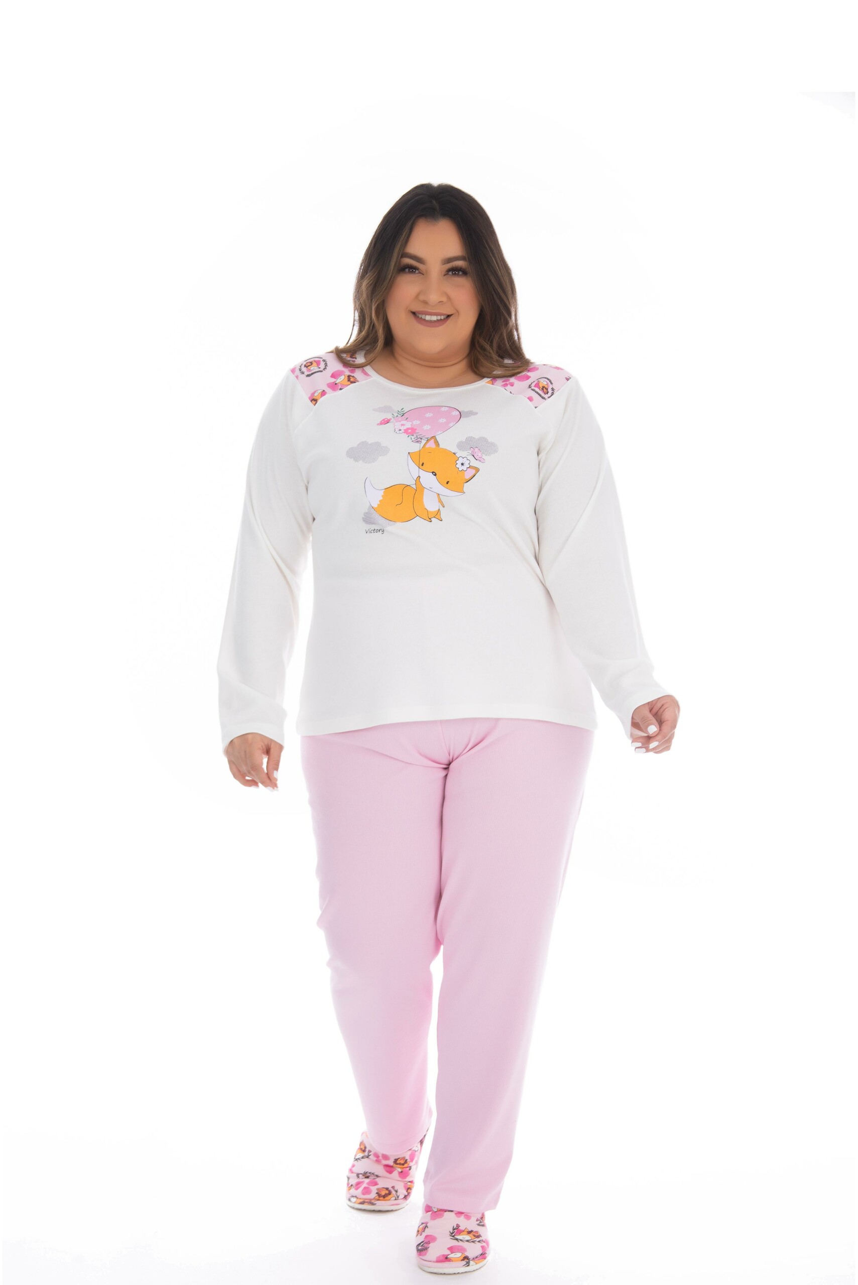 O Pijama plus size com blusa estampada foi confeccionado especialmente para garantir a você muito conforto além de muito charme para noites perfeitas. E o melhor, a composição deste pijama está definitivamente maravilhosa. Este modelo é composto por 50% algodão e 50% poliéster. A cor da peça é definida pela calça, assim como a estampa pode variar. Este modelo é definitivamente perfeito. E que tal ficar ainda mais sexy com as nossas Camisolas? Não deixe de comprar a Camisola tomara que caia e tule – Linda, assim como a Camisola em microfibra aberta nas costas – Leidiane. Vem comprar o melhor da moda íntima feminina!