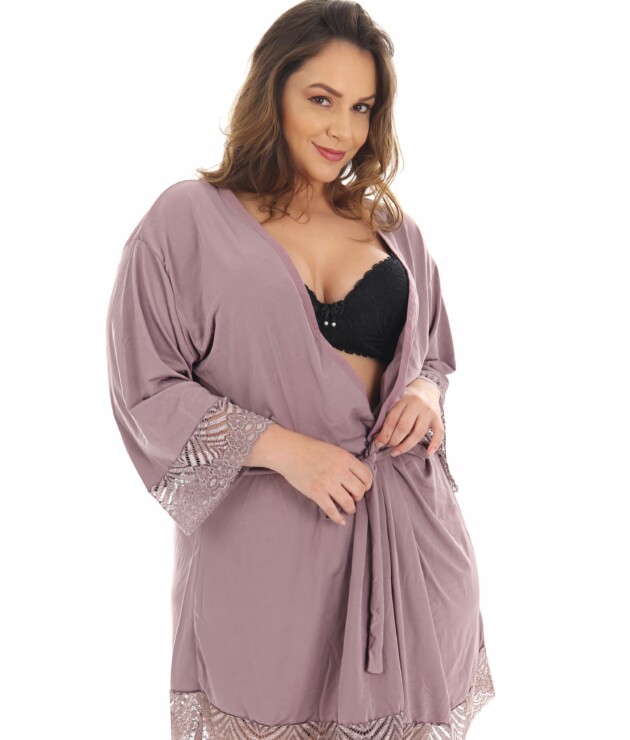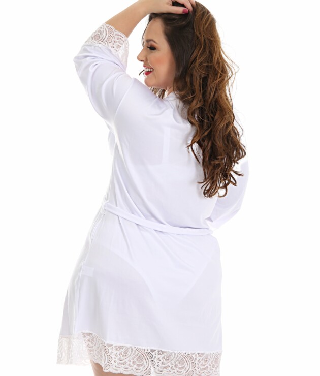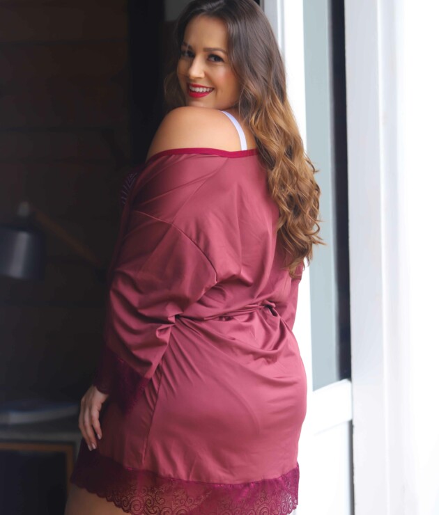 O Robe feminino Plus Size – Talita, vai deixar seu look noite super glamouroso. E para garantir ainda mais a sua satisfação, a composição deste robe está definitivamente maravilhosa. Ele é composto por 90% poliéster e 10% elastano. E para deixar este modelo ainda mais bonito, ele possui detalhes em renda que vão te deixar super charmosa. E para com binar com este robe, você não pode deixar de dar uma olhadinha em nossas Camisolas. Principalmente na Camisola sensual com calcinha – Cecile e na Camisola em renda e microfibra – Edilene. Compre também a Cinta dupla alta na cintura – Monica para esconder aquelas gordurinhas indesejadas!