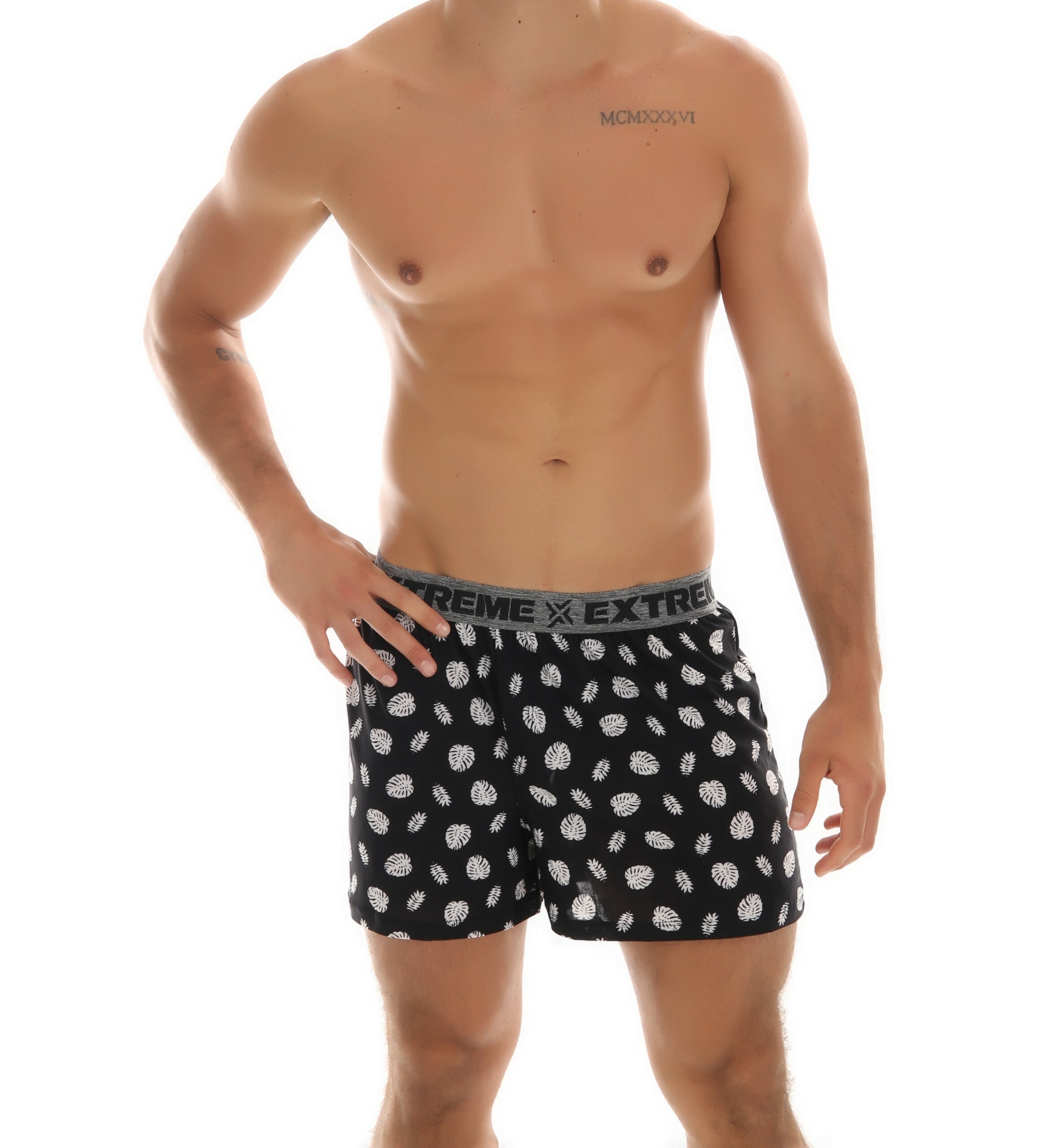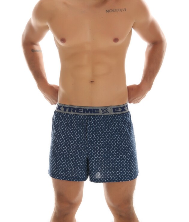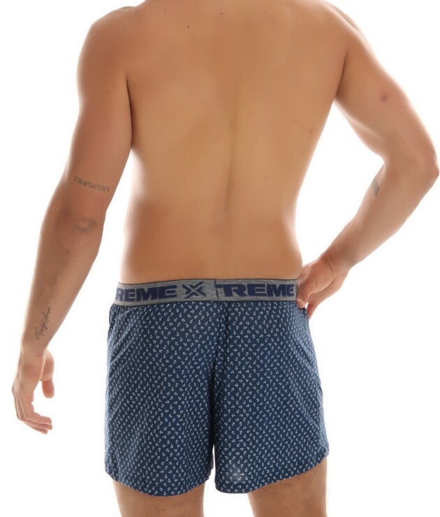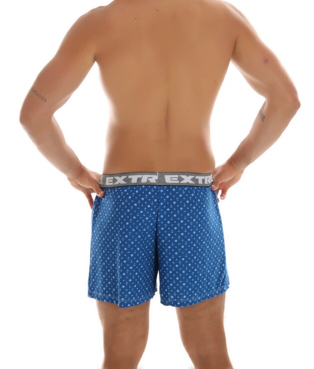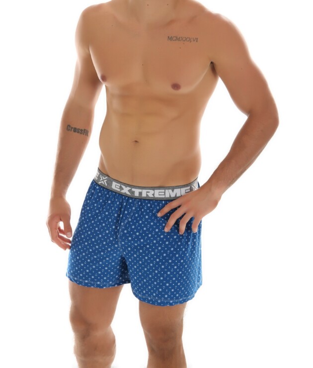 Está disponível nas cores Azul-Petróleo, Azul-Marinho e Preto, bem como nos tamanhos P/M/G/GG. Ela possui estampa variável, onde a cor é definida pelo fundo da peça. O estilo do elástico também pode variar.