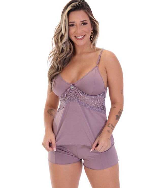 O Short Doll com detalhe em renda – Sarita, fica maravilhoso no corpo. Nós deixamos esta peça além de super confortável para dormir, mega sexy. A composição também é definitivamente excelente. Ele é composto por 82% poliéster e 18% elastano. Enfim, ele veste super bem e fica lindo no corpo. As alças possuem regulagem em metal, ele não possui bojo. Ele vai deixar as suas noites de sono ainda mais perfeitas, te proporcionando conforto, além de você ficar mega sensual para aqueles momentos mais especiais. Afinal, nós sempre pensamos nos mínimos detalhes detalhes para você ficar perfeita! Não deixe de conferir as nossas Lingeries Sensuais. É uma mais linda do que a outra. Principalmente o Conjunto Laura.