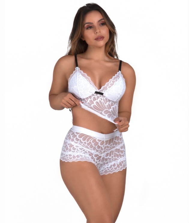 Para deixar a sua noite ainda mais especial e inesquecível, confeccionamos o Short Doll sexy em renda – Suellen. A renda garante sensualidade, com um irresistível jogo de mostra e esconde com a transparência da renda. Este short doll não possui bojo, apenas forro no soutien. Para facilitar o ajuste, as alças possuem regulagem em metal. E como nós sempre pensamos em cada mínimo detalhe das nossas peças para garantir o melhor da moda íntima a você, este short doll possui uma composição definitivamente perfeita. Ele é composto por 90% poliamida e 10% elastano. O forro do short está em 100% algodão. Para completar o seu look com ainda mais charme e glamour, confira agora mesmo a nossa categoria de Robes.