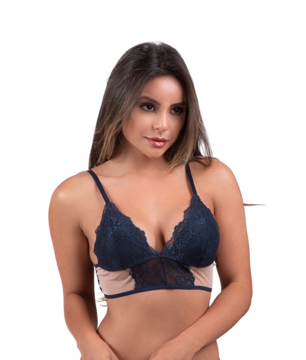 A peça está disponível na cor Azul-Marinho, Branco, Preto, Sensualle, Vermelho e Terra, bem como nos tamanhos P/M/G e GG. Sua modelagem é de sutiã sem bojo e sem arco de viés, com alças finas e regulagem em metal. Definitivamente feito para você!